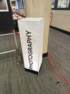 We designed the vinyl graphics and transparent paper components in Illustrator, exported them as SVGs, and cut them using the Cricut. Over several days, we cut and weeded vinyl for the lanterns and lamps, and scored, folded, and prepared the transparent paper panels. After testing adhesives, we switched from double-sided tape to glue for assembly. While one team constructed the lantern bodies and hanging frames, another prepared the large outdoor lamps and updated the signage. In total, we produced 28 lanterns (26 displayed) and 11 Discipline Lamps, which were set up with colour-changing lighting for the event.