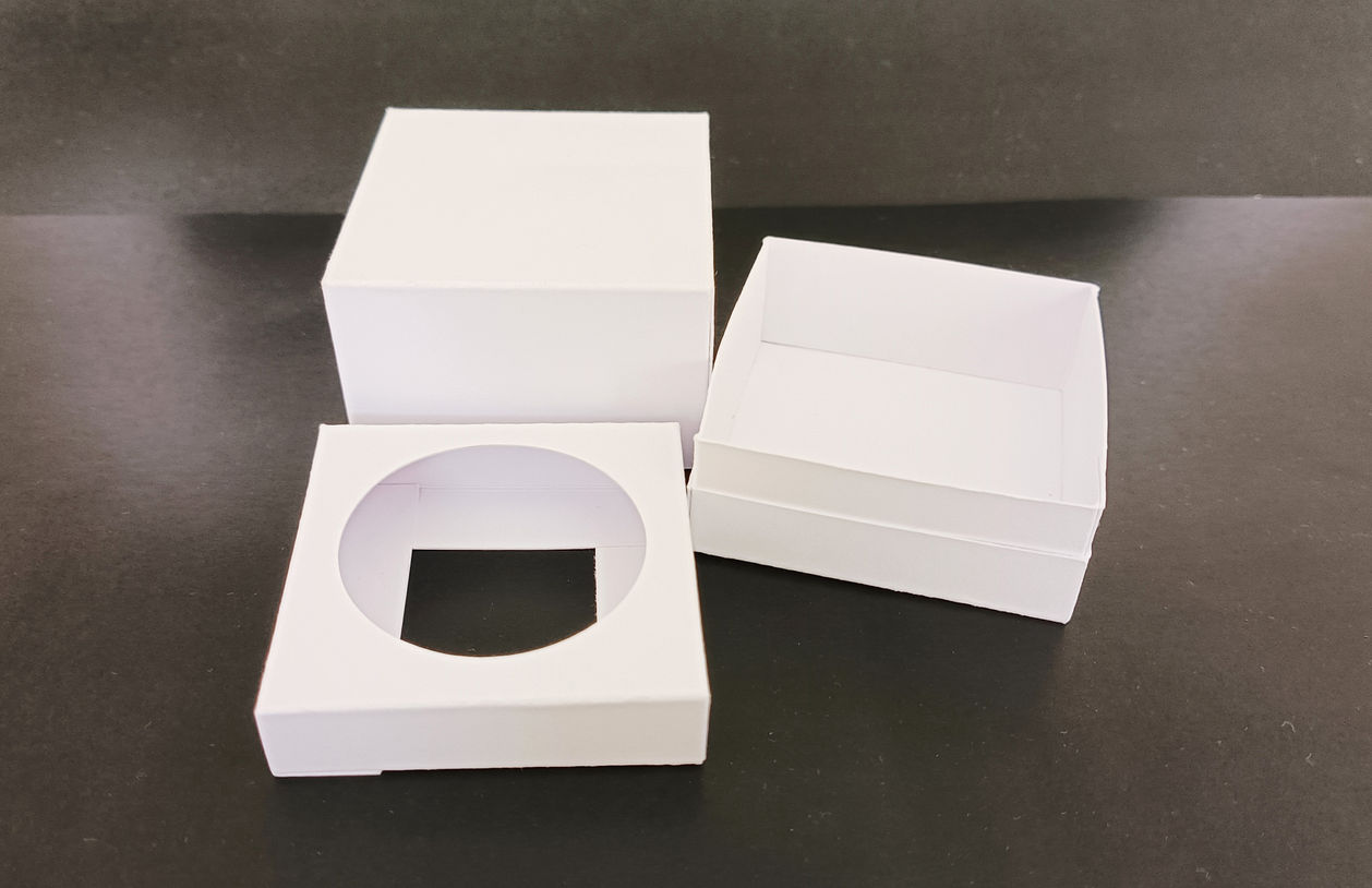 Each box is made up of three components once assembled: the base, the lid, and an insert to hold the bottle in place. The base itself is formed from two pieces, making a total of four cut pieces per box before assembly.